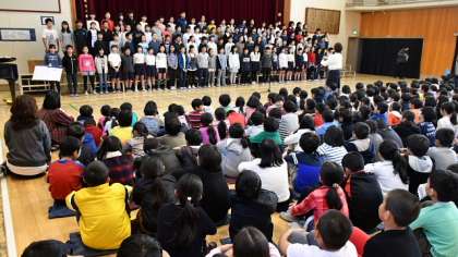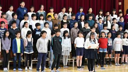 合唱発表会リハーサル、6年生の様子です。歌の合間に趣向を凝らしています。伴奏も担任がします。詳しい日程はこのページから見ることができますので、ご利用ください。お楽しみに。