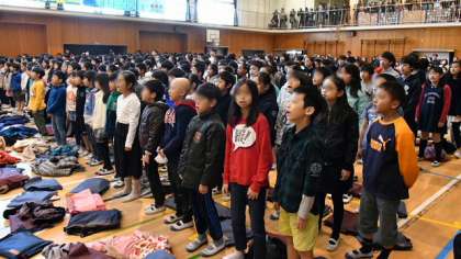 合唱発表会第3部は、2・4・6年生です。始めに第1部と同じように、児童代表の「はじめの言葉」の後、全員で校歌の1番を歌いました。