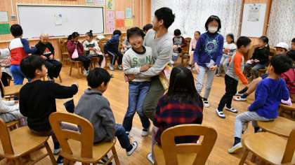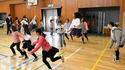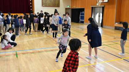 体育館では長なわ遊びが多かったのですが、グループによって遊び方を工夫していました。