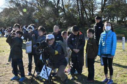 14日(木)、4年生が探鳥会を行いました。天気はよかったのですが、強い北風が吹くなかでの探鳥会となりました。そんななか、この日も、せたがやトラスト野鳥観察グループの皆さんにお世話になりました。子どもたちも寒さに負けず、元気に探鳥会に取り組みました。4年生は、双眼鏡の使い方も教えていただき、講師の先生の望遠鏡以外でも、自分たちがもってきた双眼鏡で鳥を観察しました。