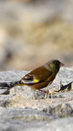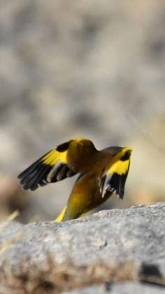 この写真の方がわかりやすいかもしれません。左がオスで、真ん中がメス。右の写真はオスが翼を開いたところです。こんな鮮やかな黄色の色の翼なのですね。
