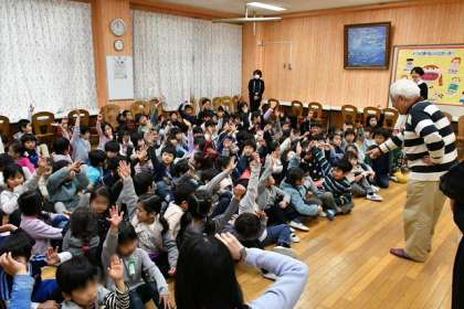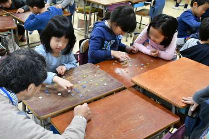 昔ながらの遊びを体験し、その面白さを体験することができました。最後に再びランチルームに集まって、遊びの感想を発表して終了です。ご指導、お手伝いいただいた皆様に感謝です。ありがとうございました。