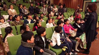 17日(日)、世田谷区民会館に、区内の小学校の合唱団が集まって、「合唱交歓会」が開催されました。本校の合唱団も出演し、先日の合唱発表会で披露した2曲を午前の部のトップバッターとして声高らかに歌いました。残念ながらその様子は撮影禁止でしたので掲載できませんが、写真は交歓会終了後集まって、指導した音楽専科教諭の話を聞いているところです。引率してくださいました保護者・家族の皆様に感謝申し上げます。