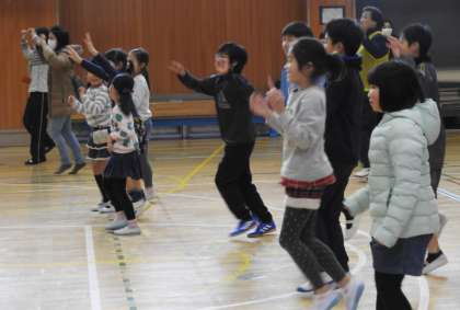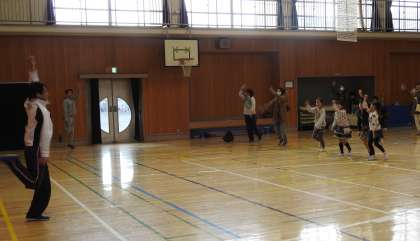 最後は、「二子二コひろば」で毎回実施している副校長考案の「オサダンス」とストレッチで体をほぐしました。毎回参加している子どもたちはしっかり覚えていて、かっこよく踊っていました。就学前の小さな子も一生懸命踊ってくれました。このような機会を子どもたちに与えてくださっている地域の方、PTA遊び場開放委員会の皆様に感謝します。ありがとうございました。