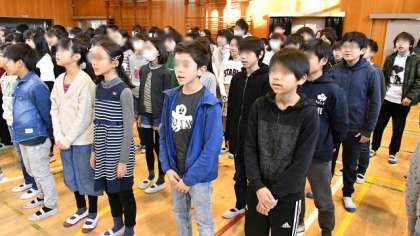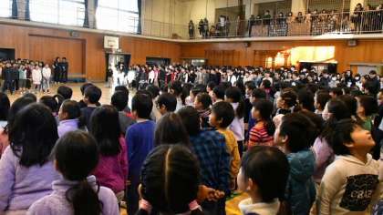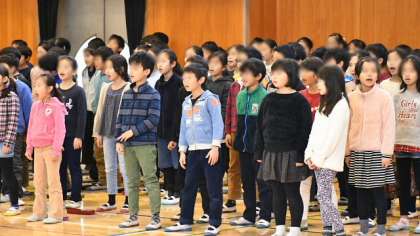 音楽朝会後半は、1月の歌をみんなで歌いました。