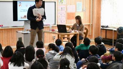 4年生はこの日もう一つ、区役所の方を講師に高齢者の福祉について学ぶ授業をしました。4年生は、社会の学習で福祉について学ぶので、その一環として実施しました。この日は、「認知症」に関する理解を深める野が目的です。