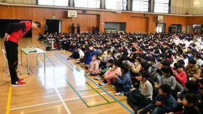 齋藤選手のお話に、子どもたちから大きな拍手がわき起こりました。
