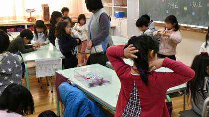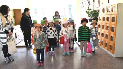 たっぷり遊んだ後、元気に保育園に戻っていきました。4月には新1年生ですね。