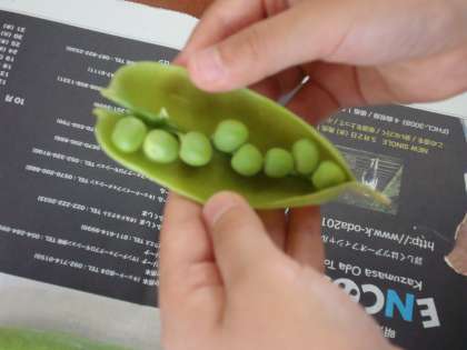 最初はぎこちない手つきでしたがだんだん、上手になりあっというまにさやむきが終わりました。