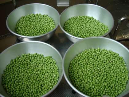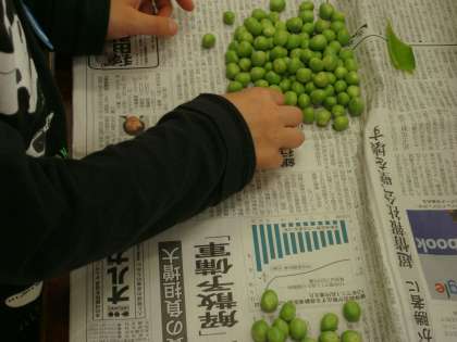 今日の給食で使うグリンピースを1年生がさやむきしてくれました。