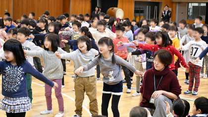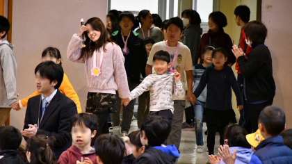 3月8日3・4校時、体育館で児童会主催の「6年生を送る会」を行いました。1年生から5年生が、二子玉川小学校をこれまでリードしてきてくれた6年生にお礼と感謝の気持ちをこめて行う会です。6年生は1年生と手をつないで入場。ステージ前のひな段に座りました。