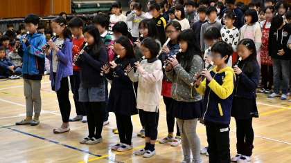 5年生が演じる各学年の思い出を、6年生も感慨深げに見ていました。