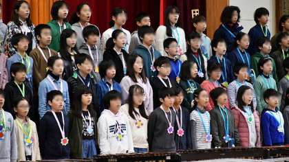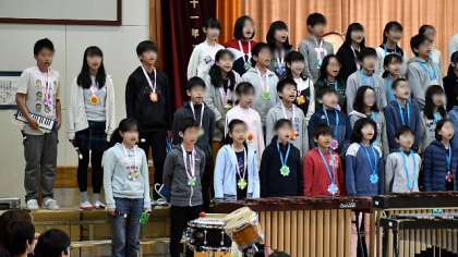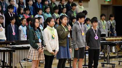 各学年の出し物へのお礼の気持ちをこめて、6年生も歌と合奏を披露しました。
