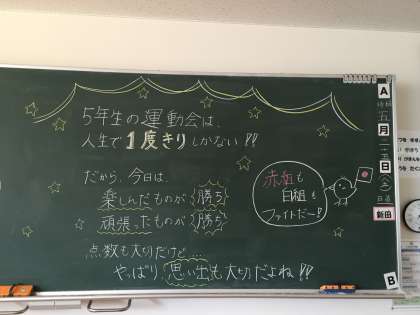 各教室の黒板に、子供たちへメッセージが書いてありました。