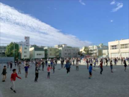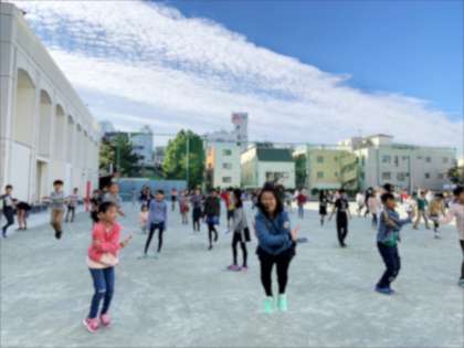 秋の体育朝会では、短縄を行っています。みんないろいろな技に挑戦してます。