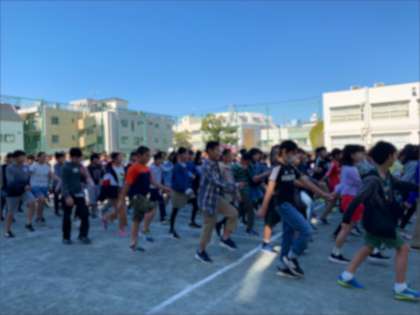 運動会に向けて整列や行進の仕方など、集団行動の確認が行われました。