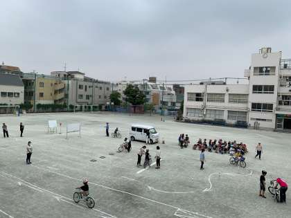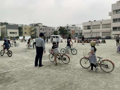 玉川警察の方々に来て頂き、安全に自転車に乗れるように学習しました。保護者の皆様もご協力、ありがとうございました。