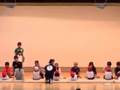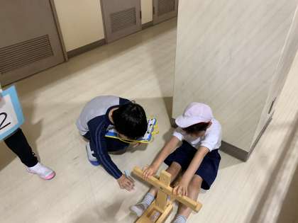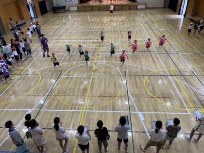 6年生がお手伝いをして、1年生の新体力テストが行われました。