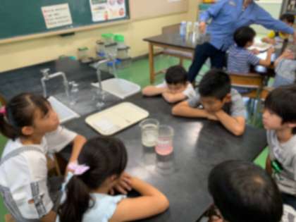 トイレットペーパーの実験を通して、下水道についての学習が行われました。