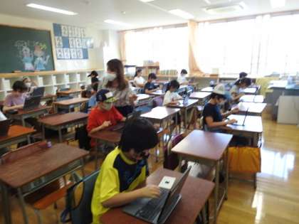 午後から5年生Bグループの児童が初登校。