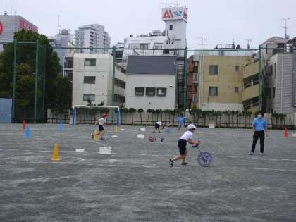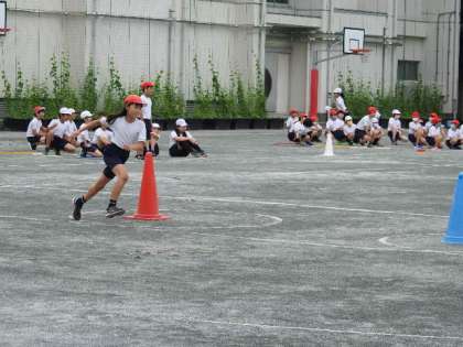 密を避け、楽しく運動をさせたいという担任が試行錯誤して考えた障害物競争。走っている姿を見ると、みんな生き生きして楽しそうです。