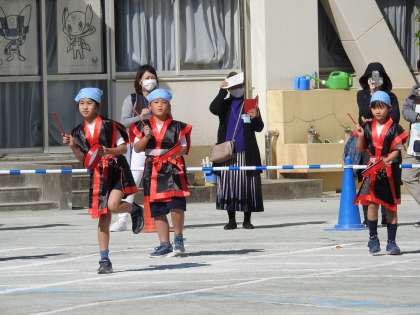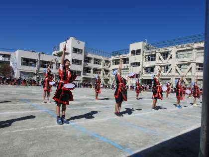 「ユイユイ」と「唐船どーい」の曲に合わせて、リズムよく太鼓を叩きながら踊りました。