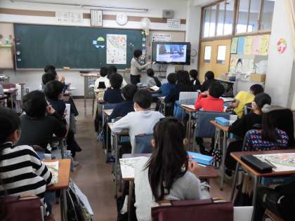 世田谷美術館の方が来校し、美術館の様子や作品の紹介をしていただきました。