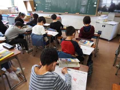 今日の4年生の学習の様子です。タブレット端末を使って3年生の学習の振り返り活動をしたり、社会科で東京都について学習したりしました。