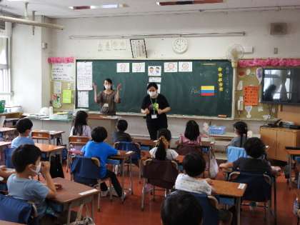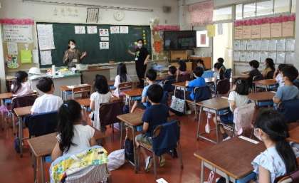 ALTの先生と一緒に、楽しくあいさつを学びました。