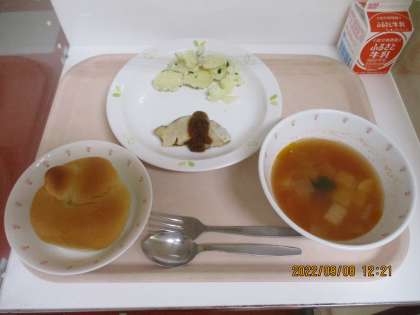 ミルクパン 牛乳 魚のバーベキューソース パセリポテト ミネストローネ