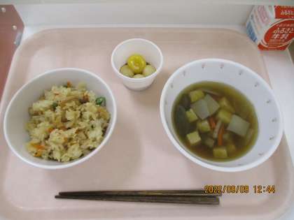 きのこごはん 牛乳 けんちん汁 月見だんご