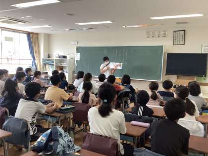 朝のつどいの時間に、読み聞かせボランティアの方や担任による、全校読み聞かせを行いました。低学年から高学年まで、子どもたちは楽しみに聞いていました。子どもたちに、本がより身近な存在になることを願っています。