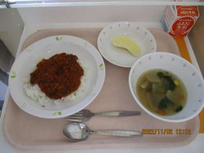 ミートライス 牛乳 大根とコーンのスープ りんご