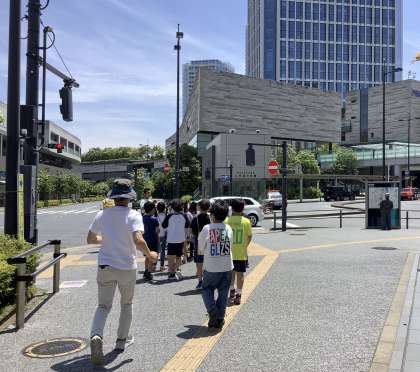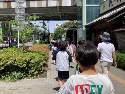 気持ちのいい青空の下、学校の周りを探検した3年生。