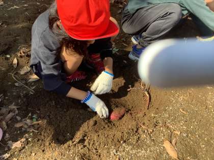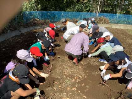 ライズ畑に芋掘りに行きました。ツルも持ち帰り、リース作りを行う予定です。