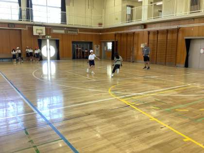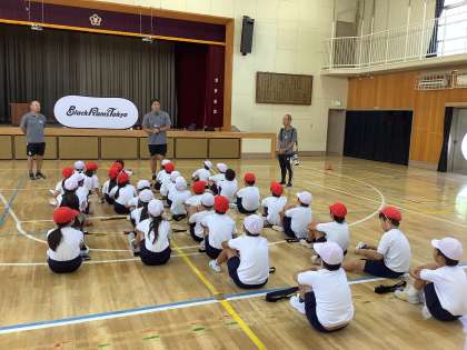 RICOH BlackRams Tokyoの方々による特別授業で、タグラグビーのルールや動き方を学びました。両腰に付けたタグをとられないような身のこなしやラグビーボールのパス練習をした後、実際に1対1でトライを目指すミニゲームをしました。横ステップで身を交わしたり、素早く走り抜けたりと、子供たちは力いっぱい動き回って、楽しみながら学ぶことができました。今日の学びを活かして、今後の体育のタグラグビーの学習に取り組みます。