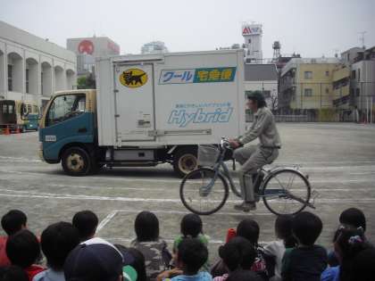ヤマト運輸さんのご協力もいただき、自転車に乗る時や、横断歩道を渡る時の注意など、たくさんのことを学びました。