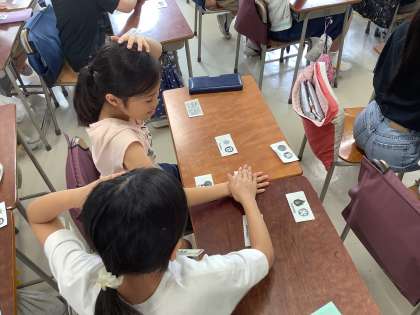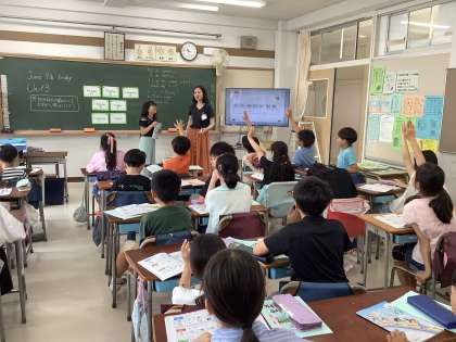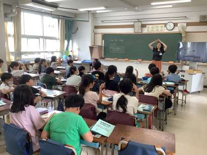 ALTのジュリー先生は、たくさん英語でお話をしてくれます。楽しいゲームで毎回盛り上がっています。