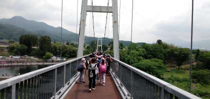 この吊り橋を渡ると、最終目的地、田園プラザに到着です。