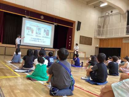 体育館でマナーについてのお話をクイズ形式で伺ったりしました。