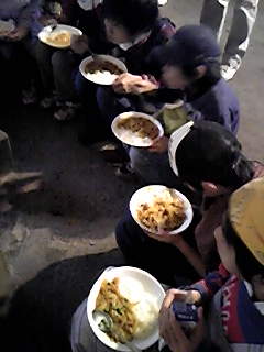 天気は予報通り、残念ながら雨が降ってきました。今夜のプログラムは肝試しにします。