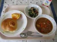 献立 焼きカレーパン 牛乳 ポトフ いちご