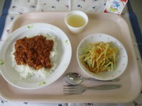 献立 カレーライス 牛乳 野菜の甘酢あえ りんご