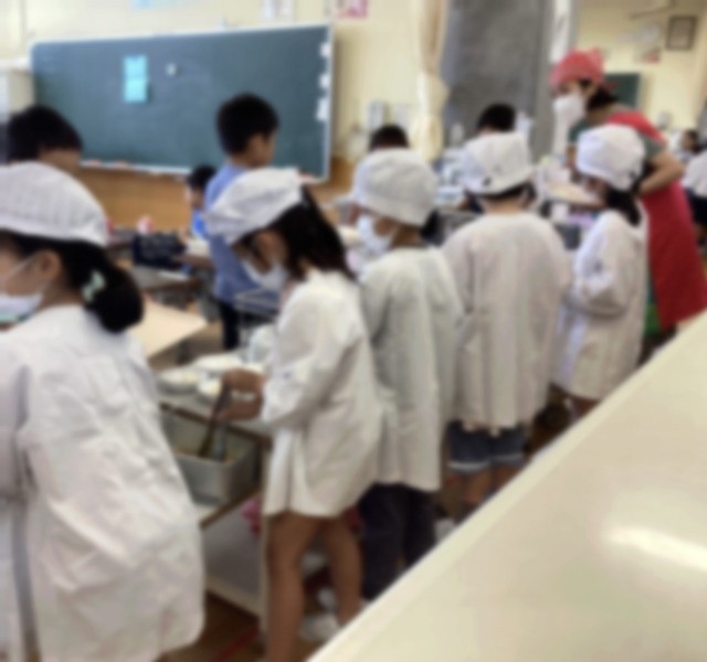 今日から楽しみにしていた給食が始まりました。1年生も配膳の仕方に慣れ、給食当番を中心にみんなで協力して、上手に時間通りに配膳しています。