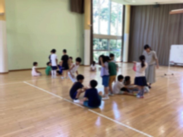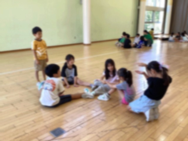 2年生の教科日本語の学習では、パブリックシアターの方々を講師に、体の姿勢や動きを工夫して表現する学びを進めています。グループで話し合い、いろいろな動きを考え、試しながら表現をつくりあげています。