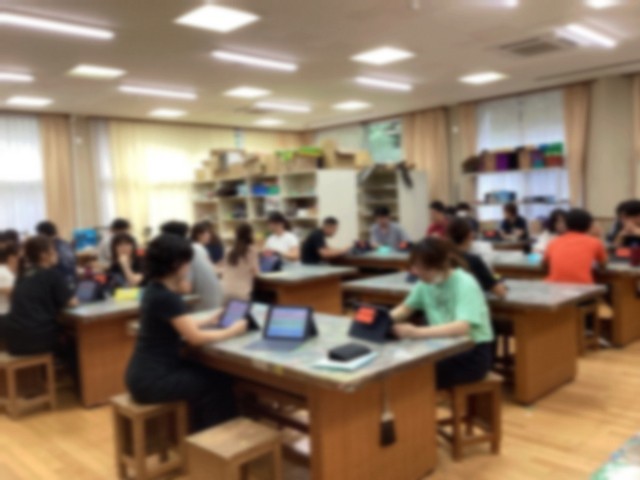 授業改善、指導力向上の取り組みとして教職員校内研修に取り組んでいます。各自が取組課題をもち、3〜4名のグループメンバーで授業を見合ったり、助言し合ったりしています。本日は6時間目終了後に行いました。