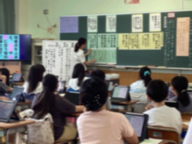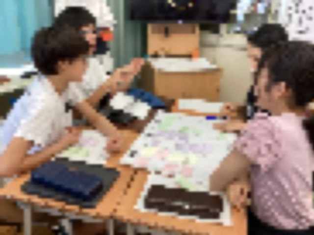 6年生の国語で学習している、目的や条件に応じて話し合う「話すこと・聞くこと」の学習です。1年生がタブレットを「正しく」「安全で」「便利に」学習に使って、学ぶことがもっと楽しくなるようにすることを目的に、1年生の「タブレットはじめの一歩の会」で、何をどのように教えたらよいかをグループで話し合いました。付箋と思考ツールを使って考えを整理し、互いの立場や意図を明確にしながら話し合いました。