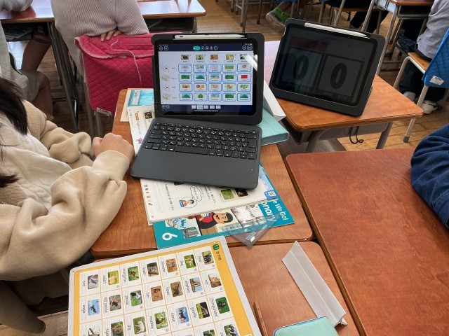 今日の6年生の外国語では、生き物を表す語句や生き物の住む場所、食べ物などを伝える英語表現をゲームも取り入れながら学びました。
