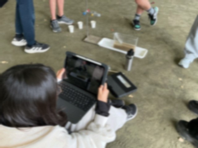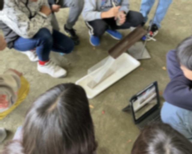 6年生の理科です。前時の学習で、地層の中には、れき、砂、泥があることを確認しました。今日は、水の働きで地層ができるのか実験をしました。どのような砂を用意して、どのような実験方法で確認すればいいのかを考えて実験をしました。実験結果を確かめ、考察してまとめました。グループで積極的に対話をして進める姿が見られました。