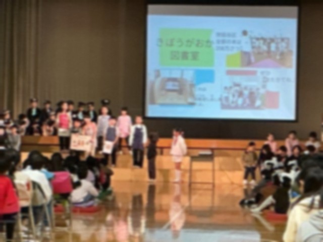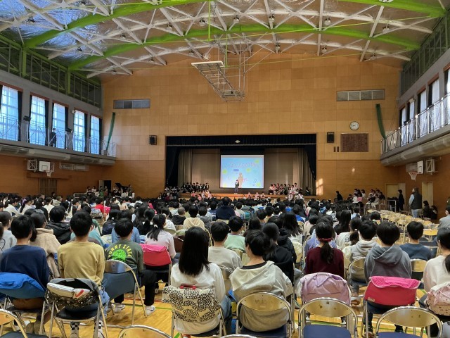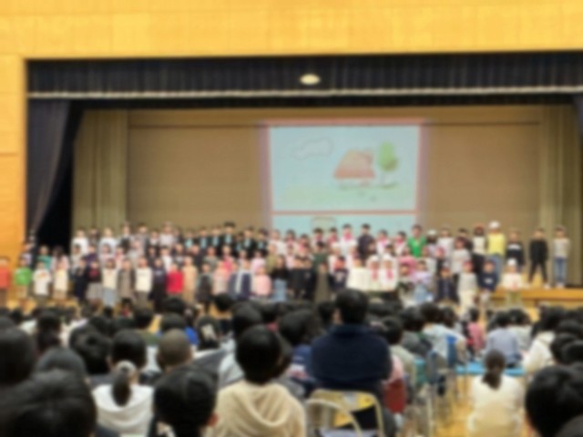 学習発表会の児童鑑賞日でした。体育館では1年生と2年生が発表しました。写真は2年生です。大きな声で堂々と自分たちが調べまとめたことを発表しました。みんなで歌った歌声もすてきでした。